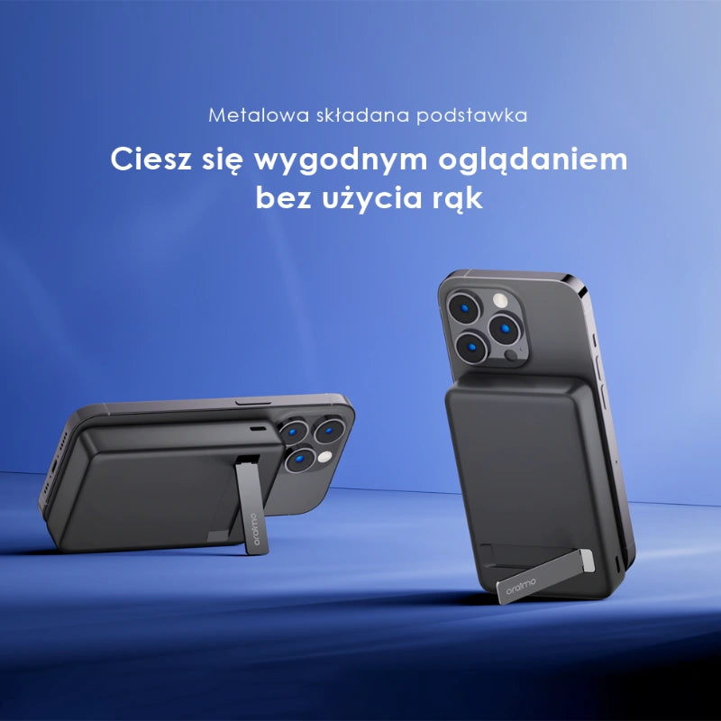 Zintegrowana podstawka umożliwia stabilne ustawienie telefonu w wybranej pozycji. Idealna do filmów, wideorozmów i pracy.