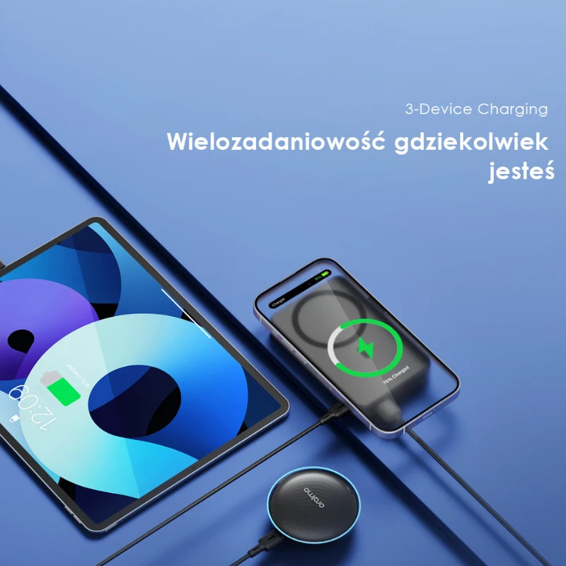 Naładuj smartfona, słuchawki i smartwatch w tym samym czasie. Idealne rozwiązanie do pracy, podróży i codziennego użytku.