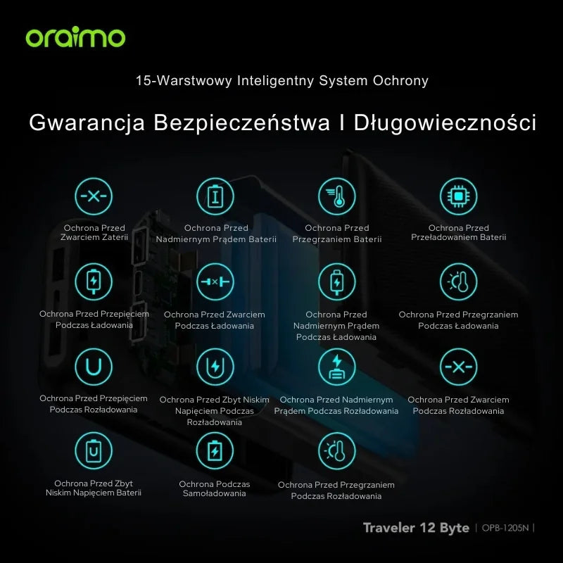 Oraimo Traveler 12 Byte – Powerbank 20000 mAh z szybkim ładowaniem 12 W
