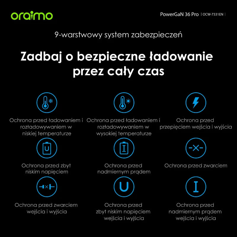 Oraimo PowerGaN 36 Pro – Superszybka ładowarka GaN 36W z kablem 60W